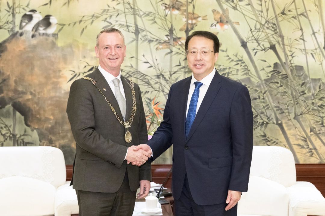 爱尔兰驻华大使欧博仁、驻沪总领事莫大维参加会见。