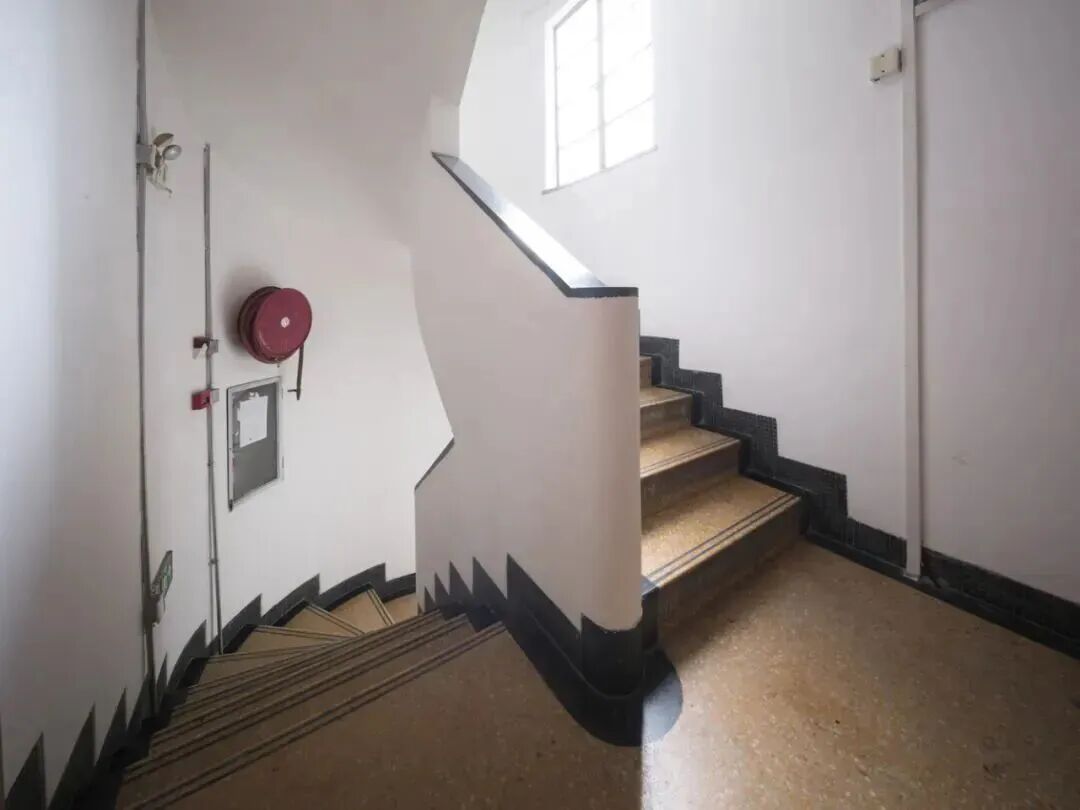 建筑沿道路转角布置,平面结合转角地形呈扇形。公寓底层为门厅、车库和锅炉房等附属用房,二层有两个四室户,三至八层为标准层,一层一户,第九、十层为跃层户。设电梯和主辅楼梯,区分主仆进出流线。卧室内设统排壁橱和五斗橱等固定家具,兼起分隔作用,室内铺柚木拼花地板,装柳桉大门、钢窗,每层有弧形阳台,采光良好,浴室采用彩色成套卫生设备,冷暖设施齐全。