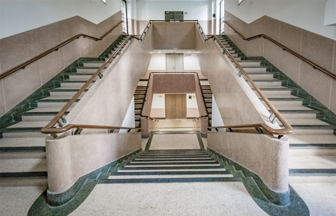 华东建筑设计院大楼(原浙江第一商业银行大楼),位于汉口路151号,由华盖建筑师事务所设计,国华工程建设股份有限公司承建。1948年11月开工,1951年9月竣工。早在1935年,华盖建筑师事务所在其合伙合同中便明确提出宣言:“我们的共同目标是创造有机的、功能性的新建筑。”这一理念贯穿其在上海的诸多实践,成为其现代主义探索的核心精神。
