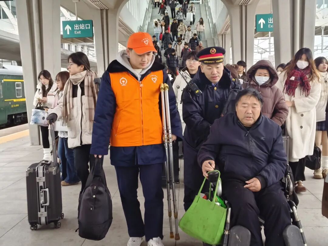 宿州站服务台工作人员和青年志愿者帮扶重点旅客出行 祝海侠 摄