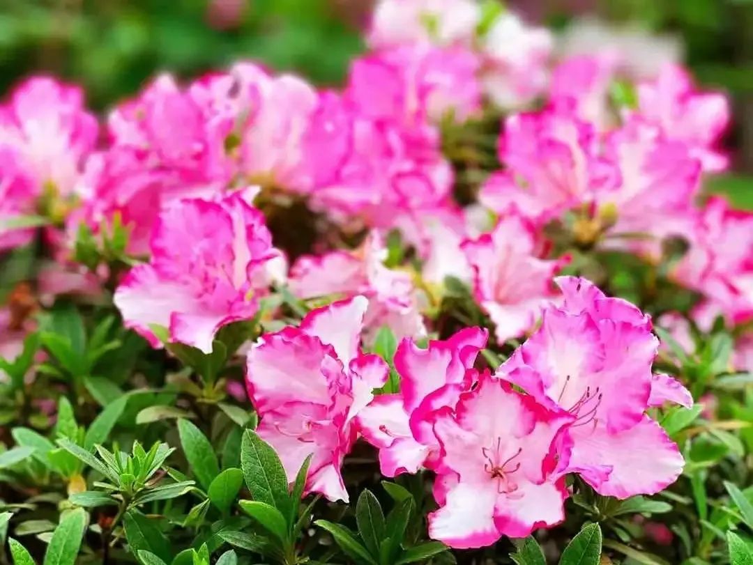 杜鹃:是双子叶植物纲杜鹃花科、杜鹃属的常绿灌木、落叶灌木 。又名映山红、山石榴。相传,古有杜鹃鸟,日夜哀鸣而咯血,染红遍山的花朵,因而得名。杜鹃花一般春季开花,每簇花2-6朵,花冠漏斗形,有红、淡红、杏红、雪青、白色等,花色繁茂艳丽。生于海拔500-1200(-2500)米的山地疏灌丛或松林下,为中国中南及西南典型的酸性土指示植物。