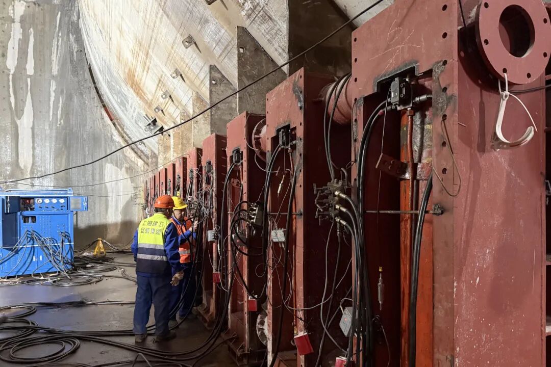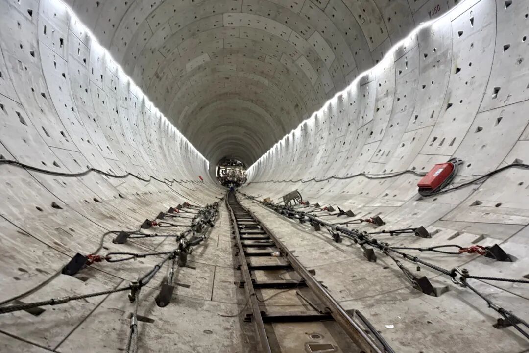 在历经13天后,盾构机车架从接收井整体平稳拖回始发井,后续再分体拆运。这一创新方案大幅缩短了施工工期,为后续盾构区间内部结构施工赢得了宝贵时间,积累了超大直径盾构机施工组织经验,提升了复杂环境下的施工工艺。