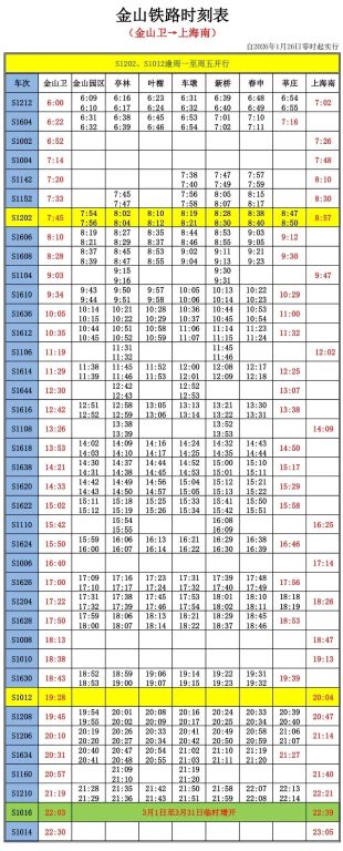 即日起至3月31日,金山铁路临时增开S1015次、S1016次两趟直达列车