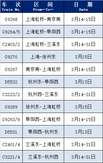 上海铁路客户服务中心介绍,根据旅客出行需求,铁路部门增开了部分旅客列车。增开列车包括G9268(上海虹桥-南京南)、G9264/5(上海虹桥-阜阳西)等。