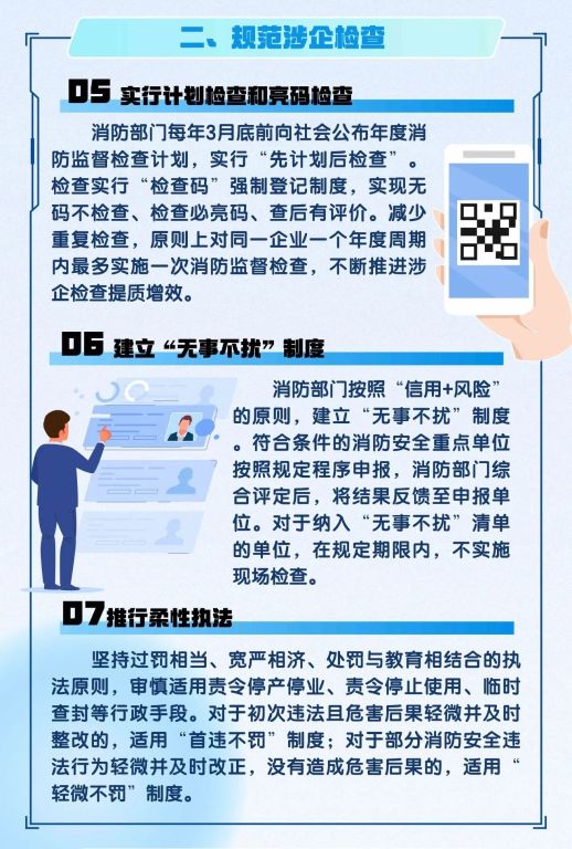 2. 在涉企消防监督检查方面,推出三项措施: