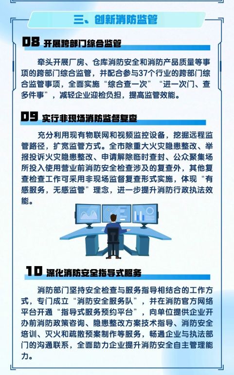 3. 在创新消防监管方面,推出三项措施: